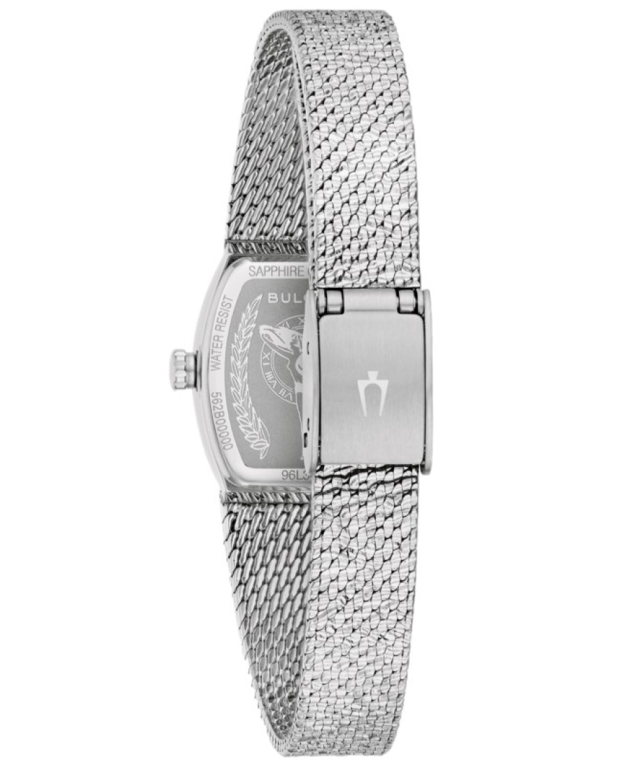 Retroceda al brillo y el glamour de la década de 1970 con el reloj clásico "Goddess of Time" de Bulova para mujer. Inspirada en el diseño atemporal de los relojes Bulova "Goddess of Time" vintage, la caja tonneau de acero inoxidable en tono plateado presenta una parte superior texturizada y un bisel pulido brillante.