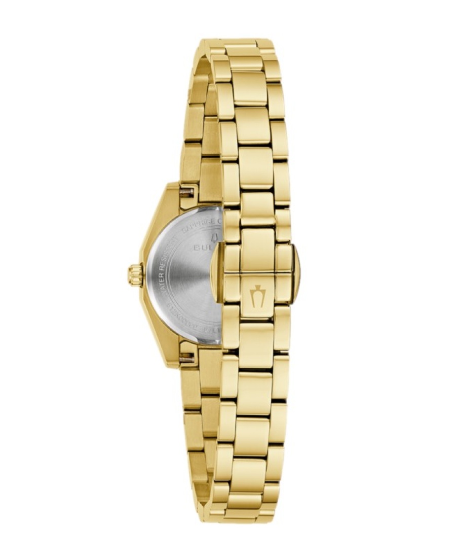 Reloj para Dama colección Sutton. Movimiento de cuarzo de 3 manecillas con caja y brazalete realizados en acero inoxidable acabado en PVD dorado.