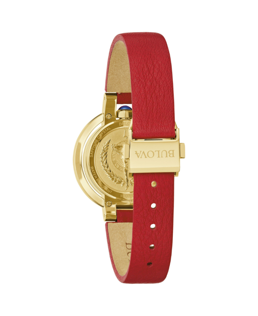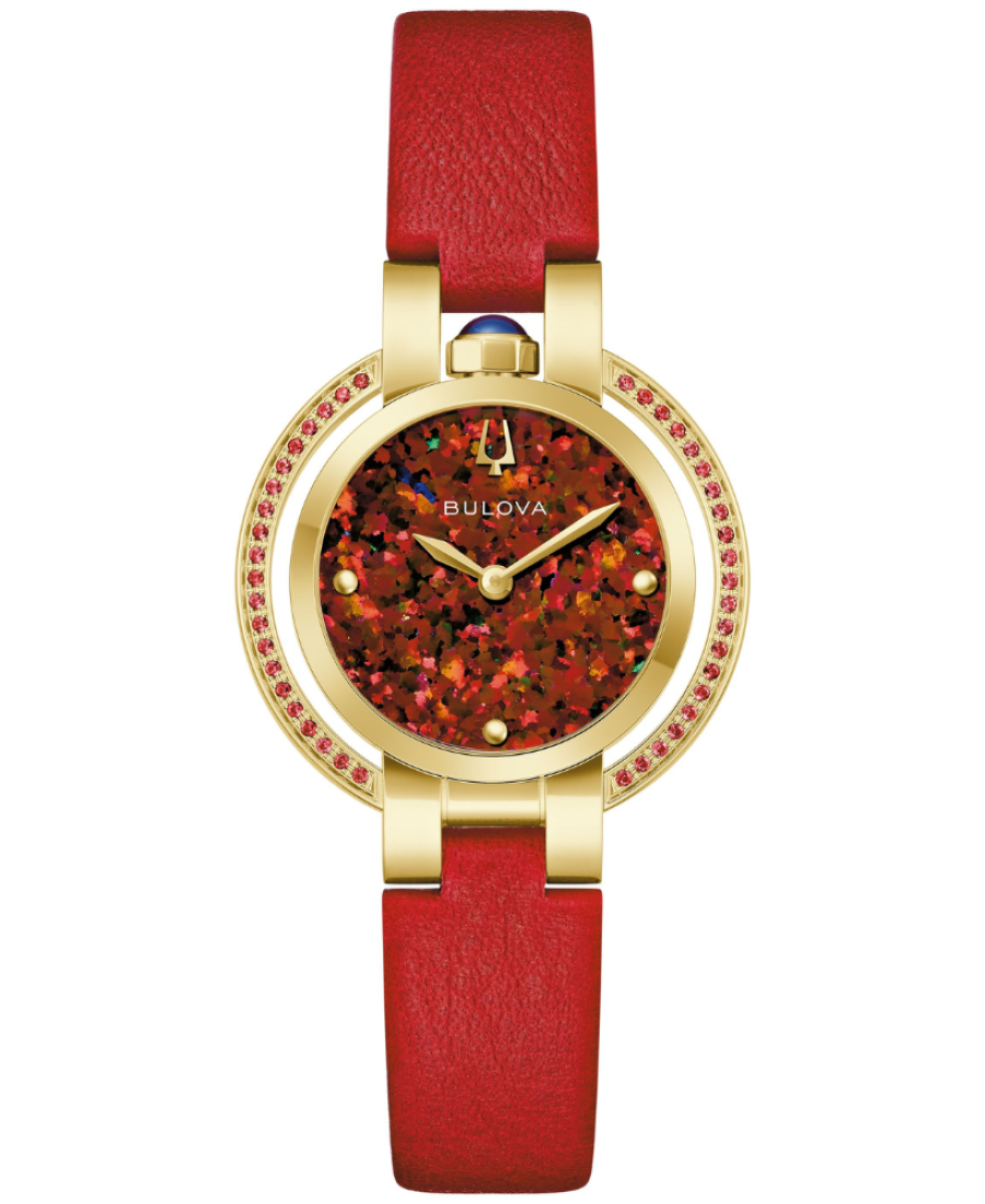Para celebrar el 150.º aniversario de Bulova, la colección de lujo Rubaiyat "Four Seasons" captura la elegancia de la línea Rubaiyat y la auténtica belleza de la naturaleza. El Rubaiyat "Autumn" captura el cambio de las hojas del otoño con 42 rubíes y un vibrante color rojo.