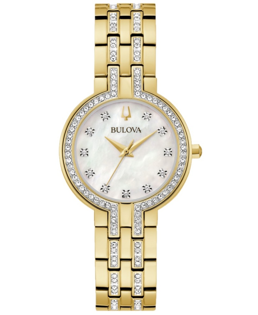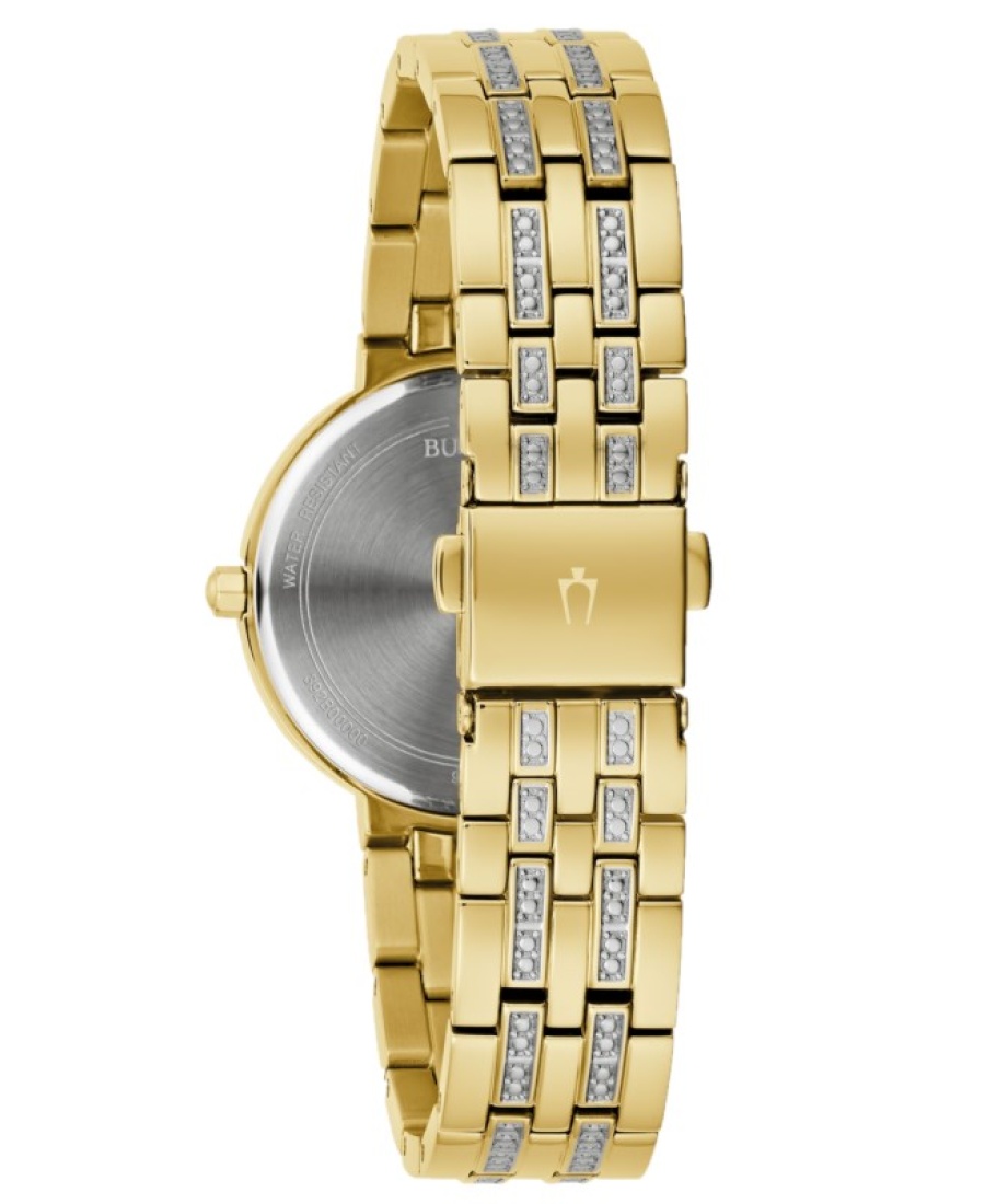 Reloj Bulova para Dama con un cristal que están bellamente detallados con cristales auténticos que hacen una declaración de moda brillante.