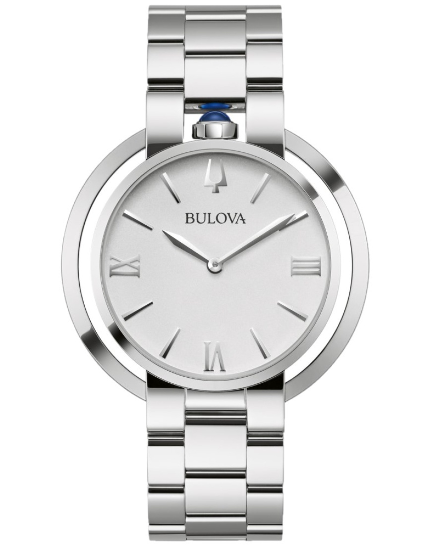 El estilo legendario nunca pasa desapercibido. Se ha añadido a nuestra icónica colección Rubaiyat un elegante y sobrio reloj clásico de vestir para mujer de Bulova, con una caja de 40 mm.