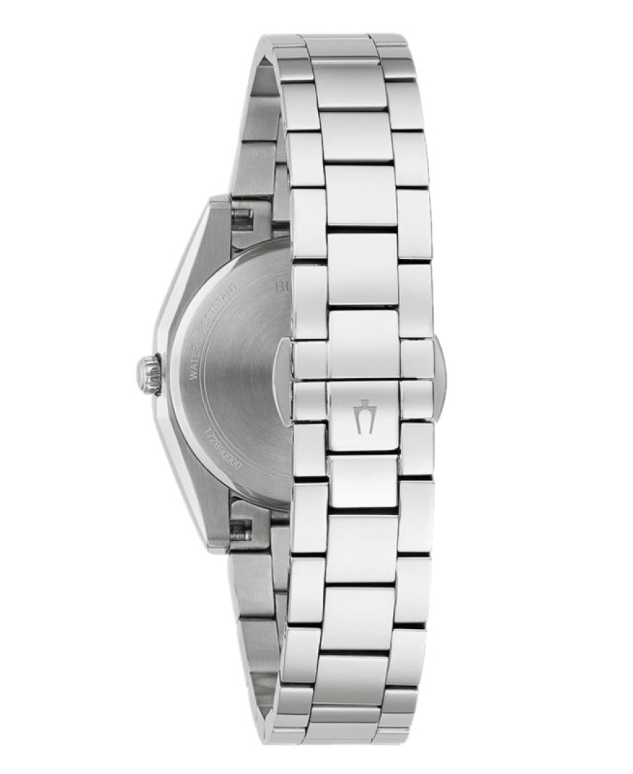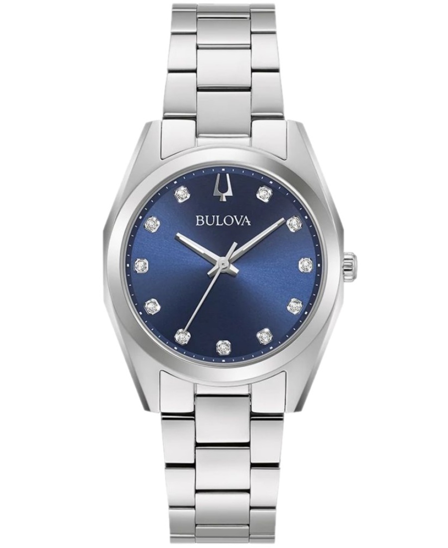 El Surveyor de Bulova es un reloj clásico para mujer que nunca pasará de moda. Este reloj plateado tiene una caja y un brazalete de acero inoxidable con una esfera azul de tres manecillas con 11 diamantes engastados tanto para la apariencia como para la sensación de un reloj de lujo. Con hermosos detalles y un estilo elegante, este accesorio aporta un toque de elegancia atemporal a cualquier ocasión.