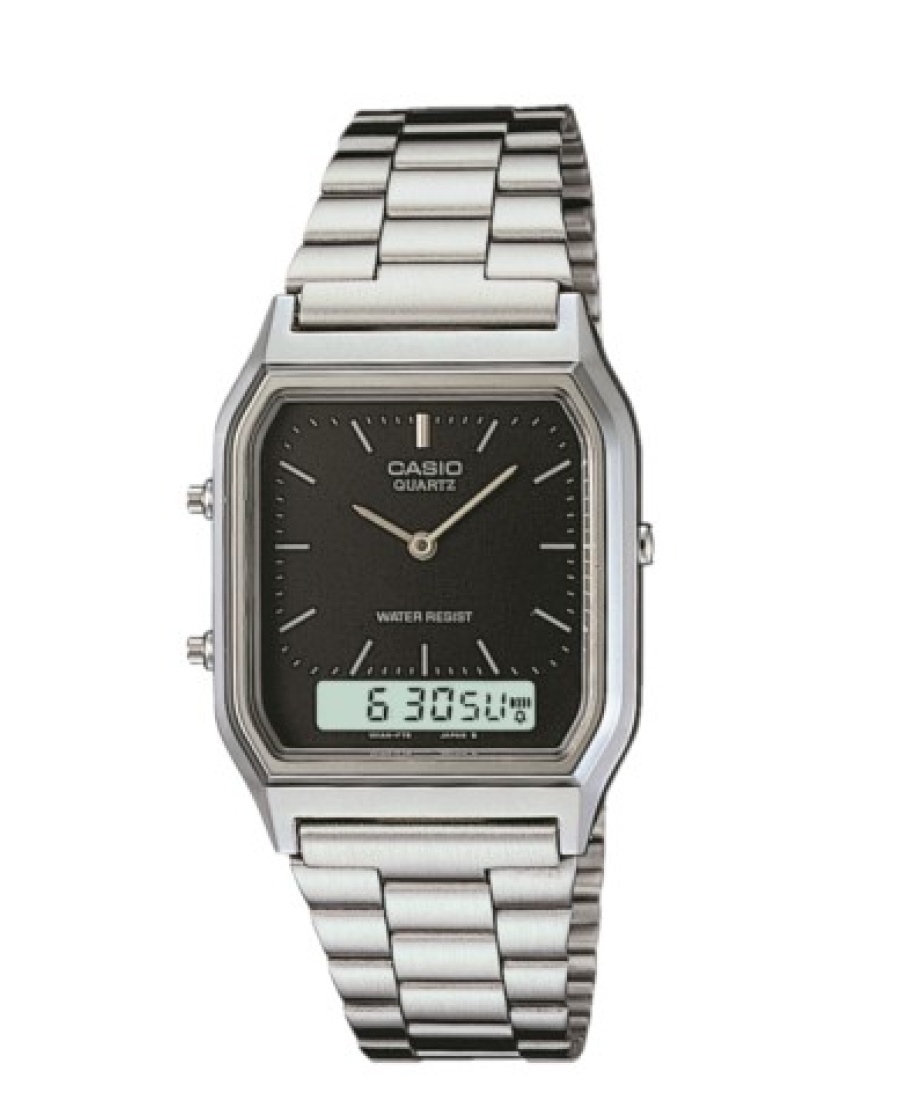 Una caja metálica de diseño anguloso, absolutamente estilizada, combinada con una elegante correa metálica, confiere a este reloj un aspecto único. La esfera mezcla hábilmente una pantalla LCD con una pantalla analógica con agujas de horas y minutos.