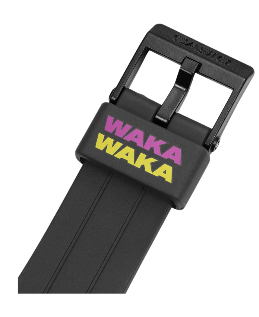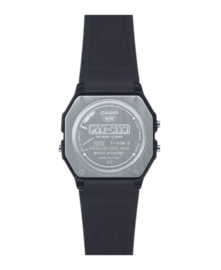 Un diseño de cara audaz con PAC-MAN y los cuatro GHOSTS (Blinky, Pinky, Inky y Clyde) y una paleta de colores neón vivos le dan al diseño una sensación pop. "WAKA WAKA", el sonido de PAC-MAN comiendo galletas, se deletrea en el bucle de la banda para darle un toque extra juguetón. El fondo de la caja también está grabado con el carácter y el logotipo de PAC-MAN. La correa está fabricada con resina de base biológica, un material que se espera que ayude a reducir el impacto ambiental. Viene en un empaque especial con un diseño de neón.